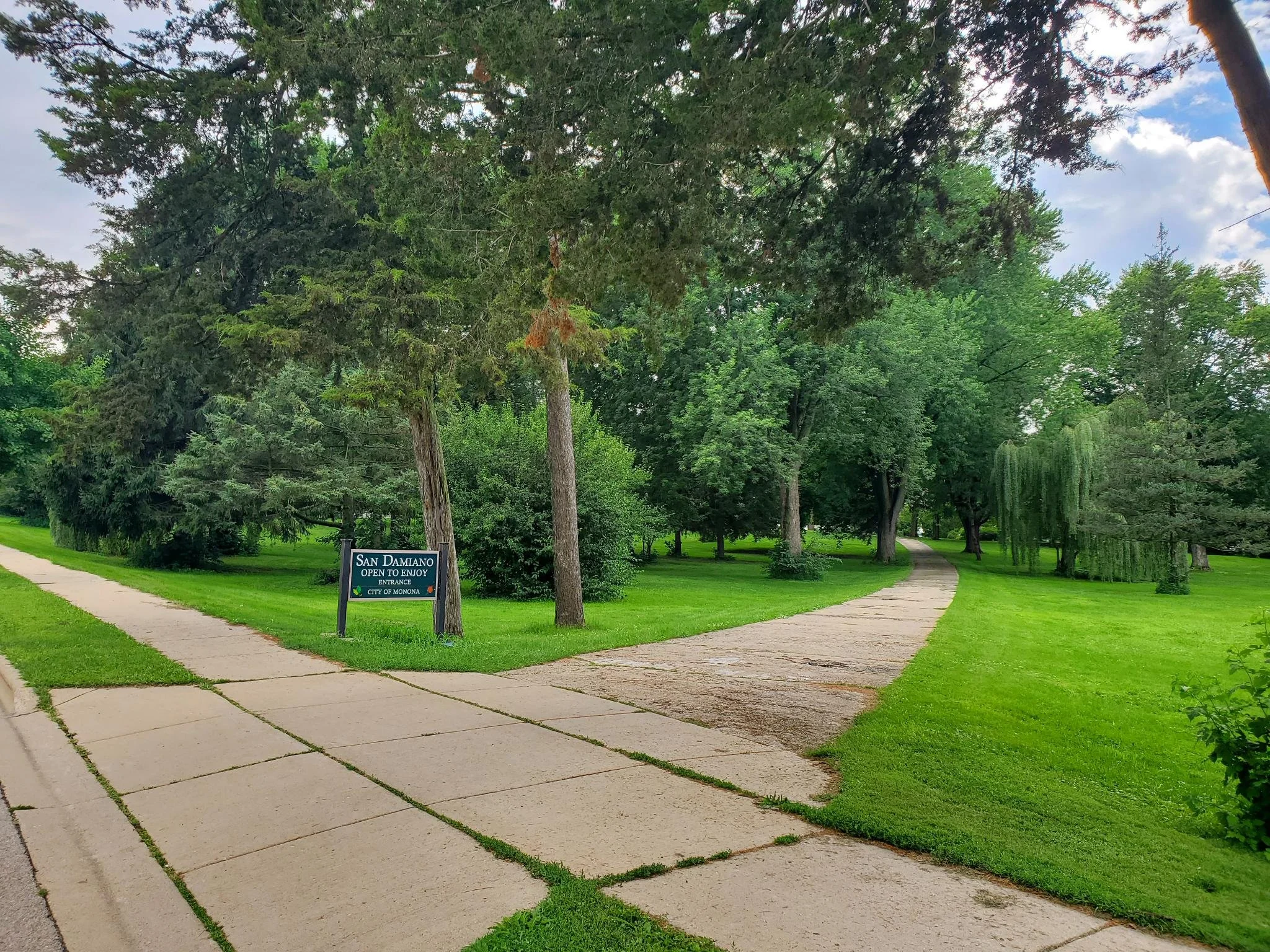 The entrance to San Damiano Park, leading to the parking lot! Photo courtesy of the Feminist Bird Club.